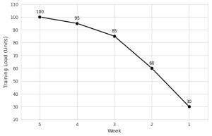 The volume reduction in runner usually doing 100km a week may look like this
